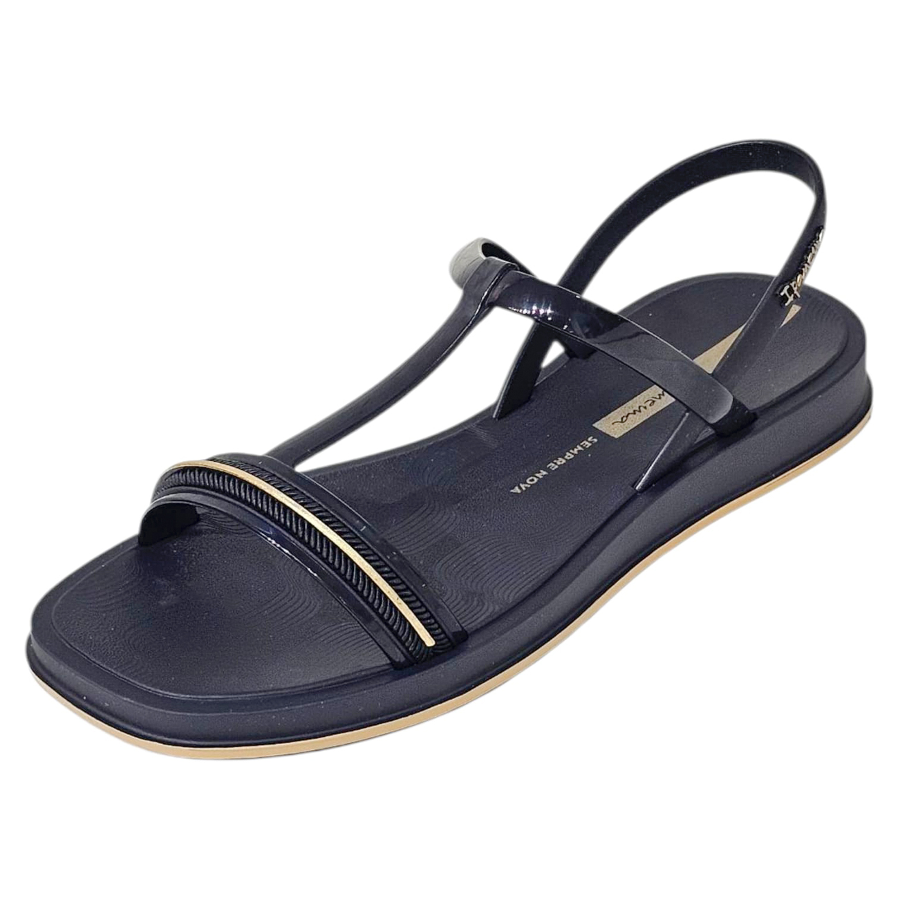 A sandália Ipanema Glow possui um visual com tiras em H com aplicação metalizada.