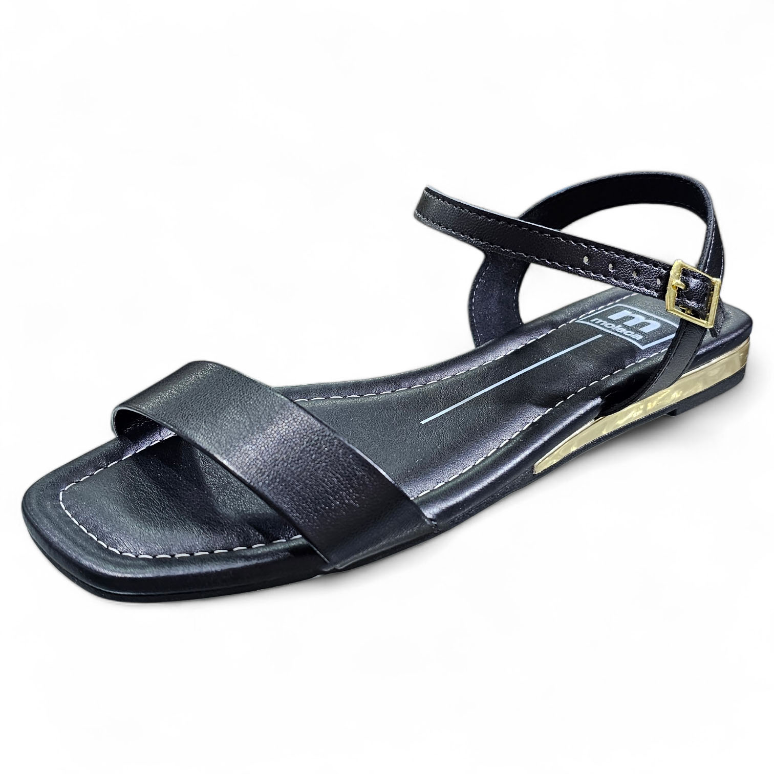 Sandália Rasteira com tira frontal e saltinho dourado, o calçado ideal para usar no dia a dia com todo o conforto e estilo que só a Moleca traz para você!