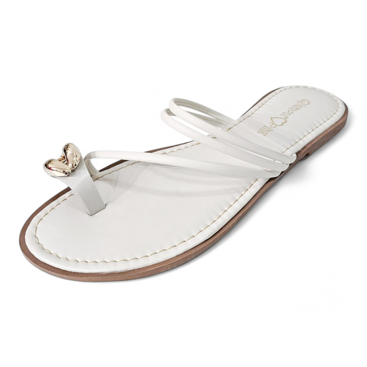 Sandália Rasteira Cruzada com Fivela Dourada - Off White