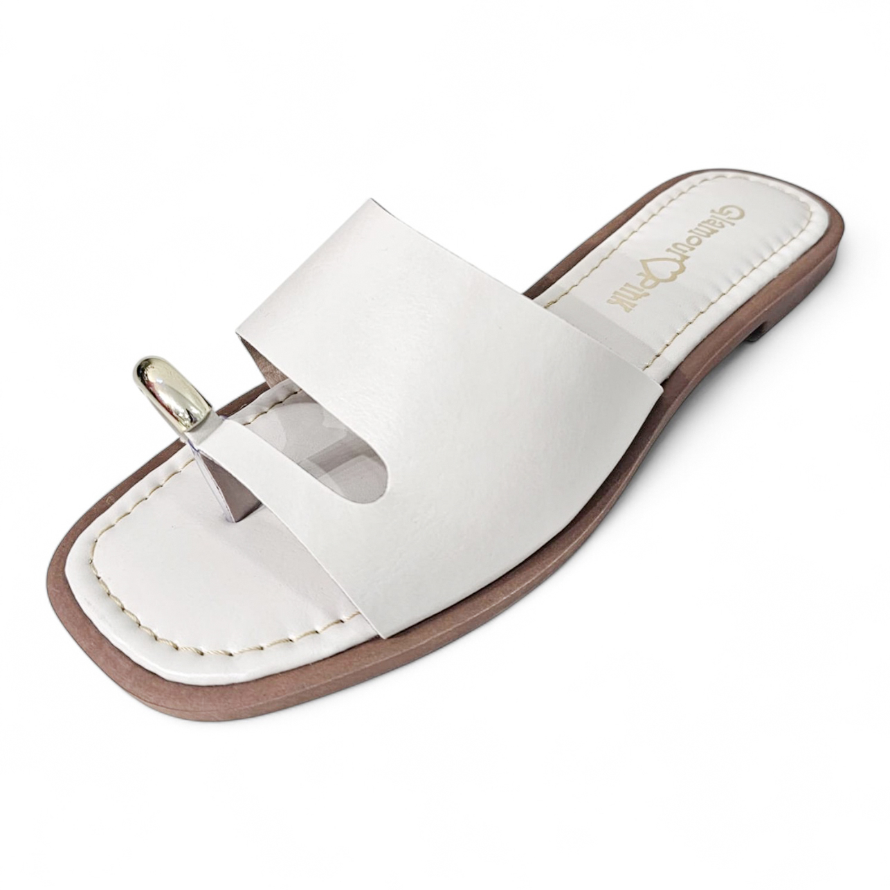 Sandália Rasteira de Dedo Faixa Fivela Dourada - Off White