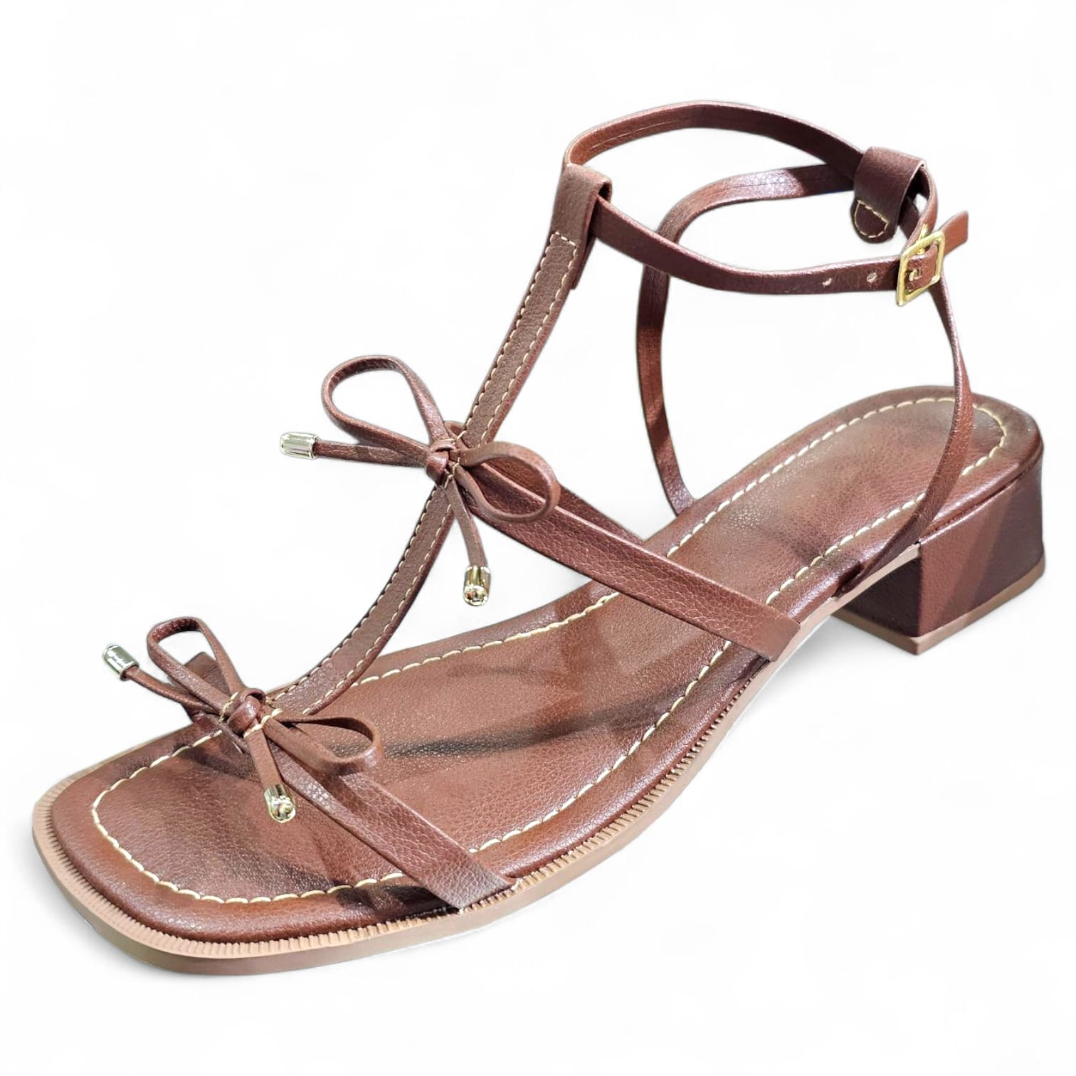 Sandália clássica, elegante e confortável com tiras frontais com aplique de lacinhos para você compor looks incríveis.