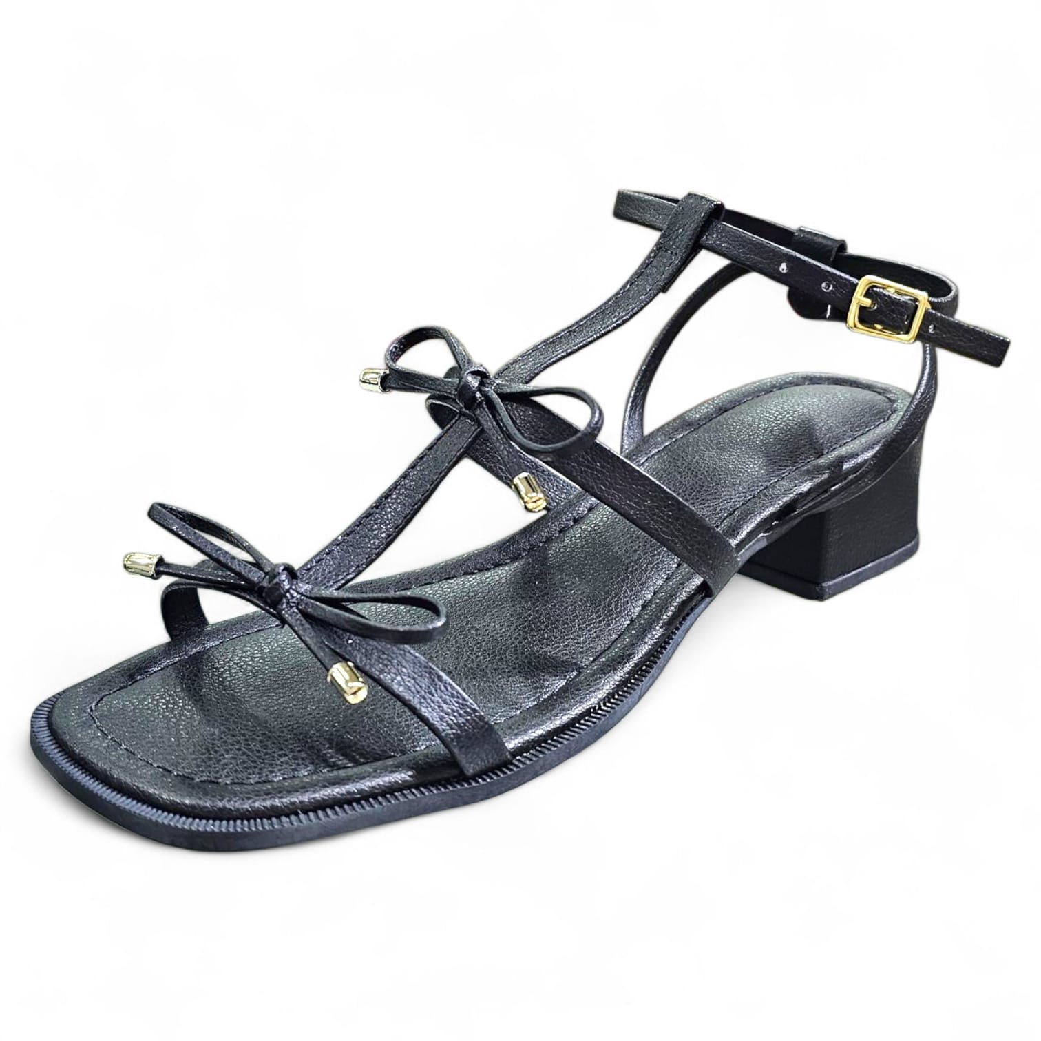 Sandália clássica, elegante e confortável com tiras frontais com aplique de lacinhos para você compor looks incríveis.