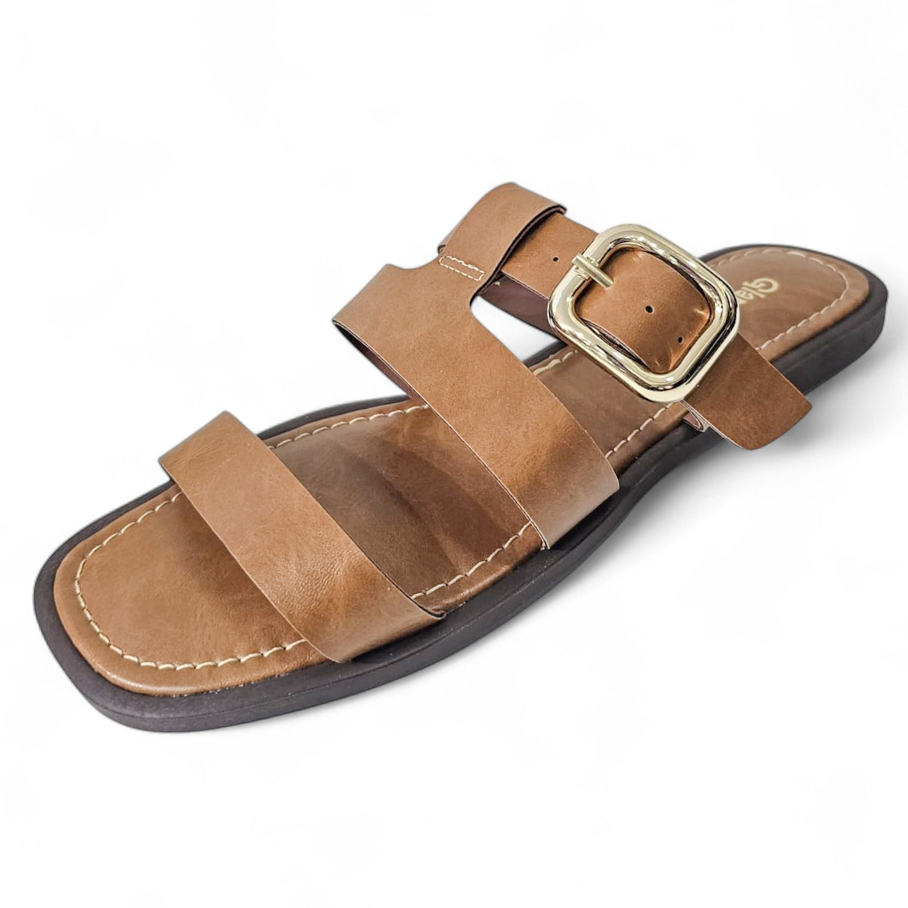 A nossa sandália rasteira com trio de tiras possui aplique de fivela metalizada ajustável, perfeita para os dias quentes. Ideal para compor looks descontraídos, a escolha certa para quem ama conforto sem abrir mão da elegância.