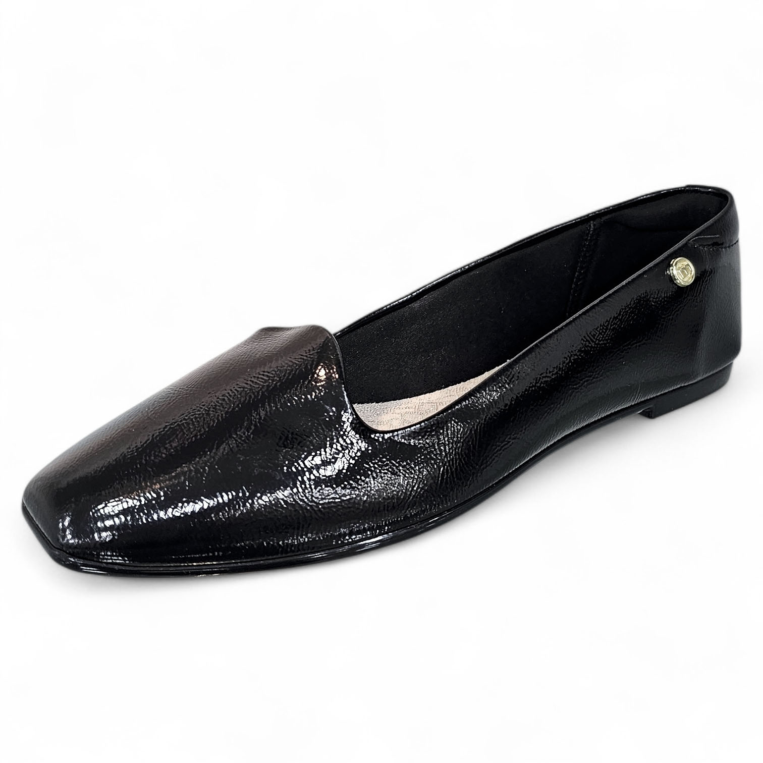 Sapatilha Slipper em verniz com bico quadrado que dá muito charme ao seu estilo.