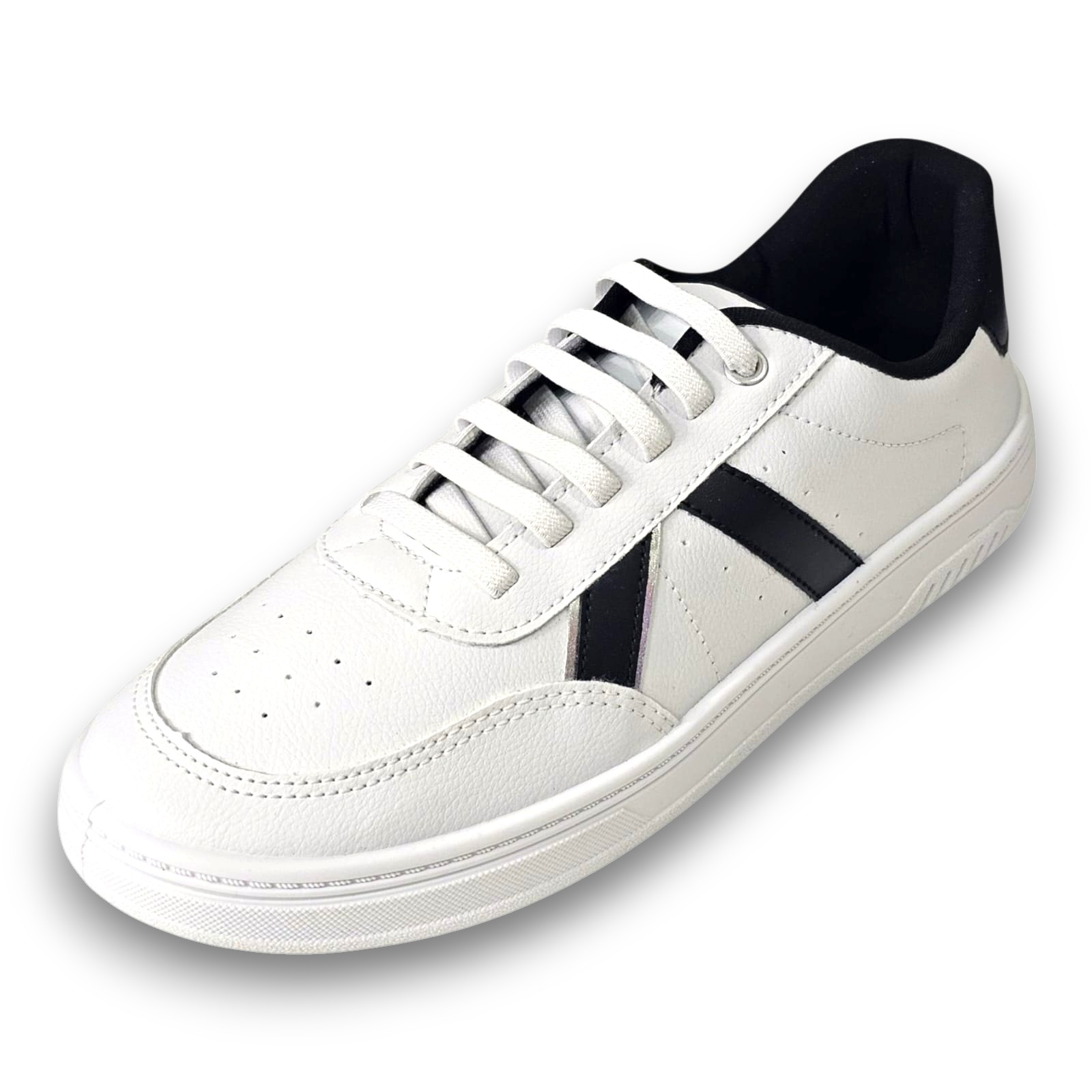 Tênis estilo básico com cadarço elástico, é confeccionado em sintético macio com detalhe lateral listrado que traz muito mais charme ao seu look.