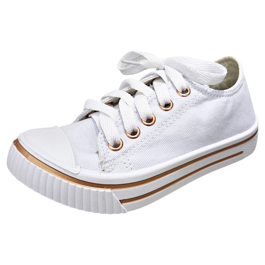 Tênis Infantil Básico Escolar - Branco e Ouro