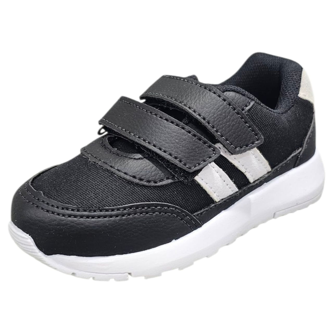 Tênis Infantil cano baixo confeccionado em sintético macio, com detalhe de microfurinhos e listras laterais.